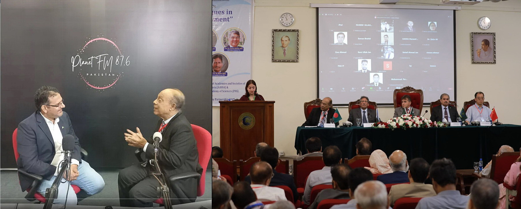 We are pleased to announce that BAS President, Emeritus Professor Dr. A.K. Azad Chowdhury participated as Member-at-Large of AASSA in the AASSA-PAS Symposium on Radiation Strategies for Health and Environment from 18-20 August 2025 in Islamabad, Pakistan. He was highly honored by the Pakistan Academy of Sciences (PAS). He delivered a keynote address before the keynote address from the Chinese Academy of Sciences. PAS also organized a special interview on Pakistan Radio on Science in South Asia, from the perspectives of Bangladesh and Pakistan. The link of the full audio of the interview is given below.