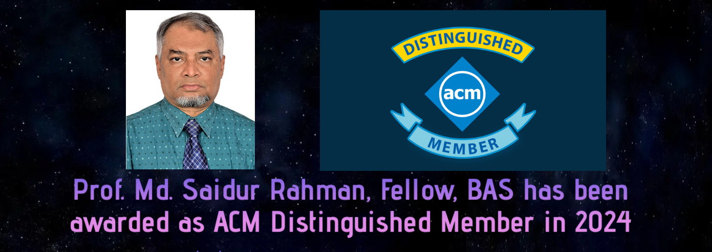 The Bangladesh Academy of Sciences (BAS) proudly congratulates Prof. Md. Saidur Rahman, Fellow, BAS, on being recognized as a Distinguished Member of Association of Computing Machinery (ACM) in 2024. This prestigious recognition is awarded to eminent researchers and professionals for their outstanding contributions to computing research, education, and innovation.